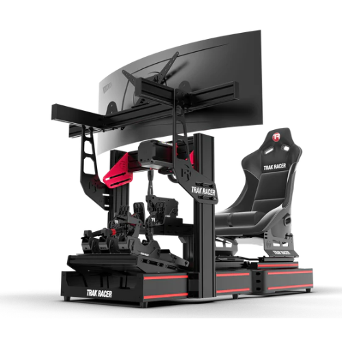But what if we found a whole system for experiencing high-level virtual racing games? Here comes Trak Racer. The brand offers thrilling driving and flight simulation gear. Their racing simulators are built with durable and comfortable equipment. A Trak Racer simulator usually comes with a solid racing-style seat. The spots to mount your steering wheel, pedals, and other gear, like a handbrake. Below are the three best Trak Racer racing simulators: